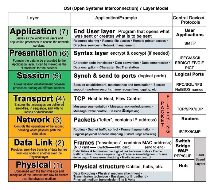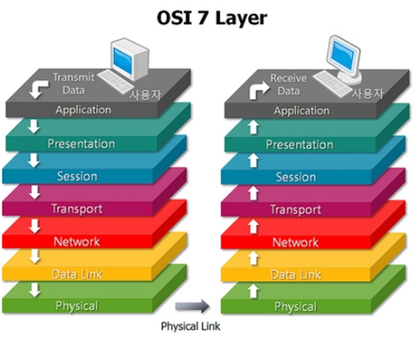 이름대로 7계층으로 이루어져있으며, 1~4계층은 하위 계층, 5~7계층은 상위 계층이라고 한다.