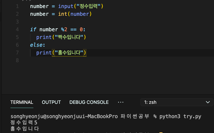True/ False 참 거짓을 표현해주는 자료형(대문자로 시작하는 점을 가볍게 기억해두자)