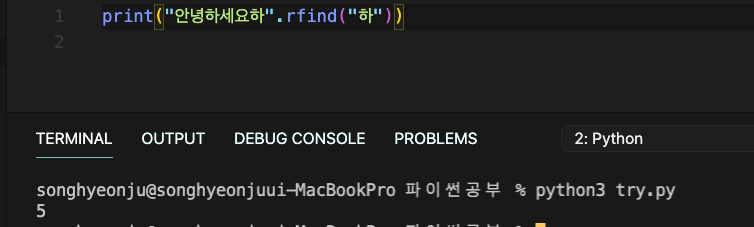 : find ( )함수가 기본적으로 왼쪽부터 문자열을 점검하는 것과는 달리, 해당 함수는 오른쪽부터 점검한다.
