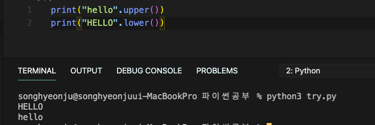문자열을 전부 대문자 혹은 소문자로 변환해줌