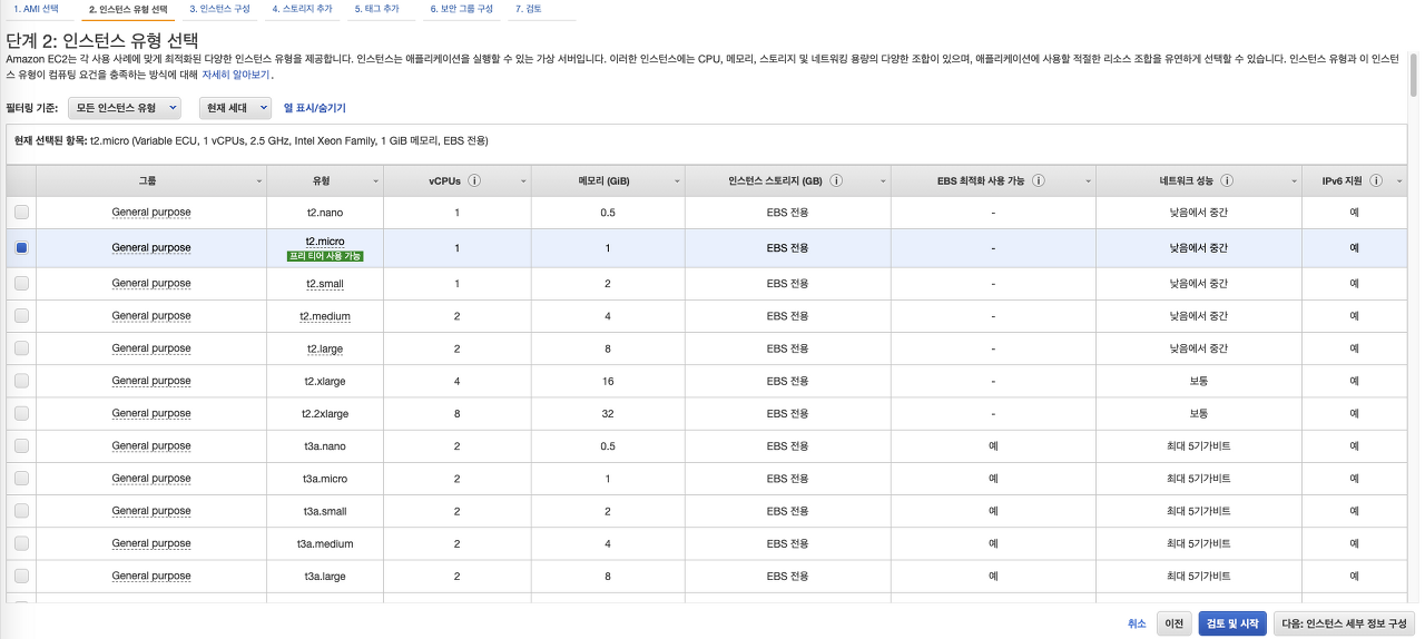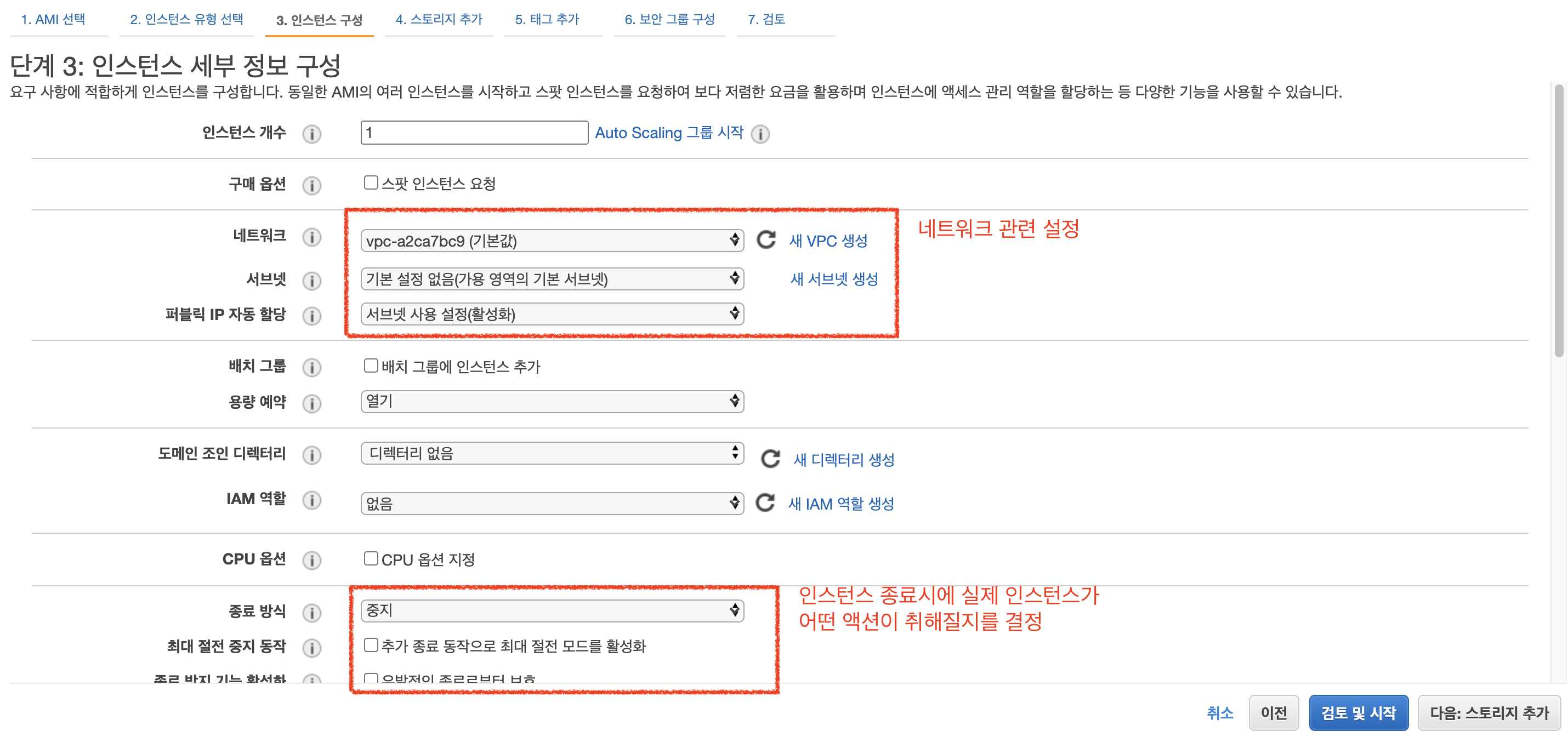 검토 및 시작하기를 바로 누르지 말고, "인스턴스 세부 정보 구성" 을 클릭하자. 그렇다면 아래 화면이 뜰 것이다.