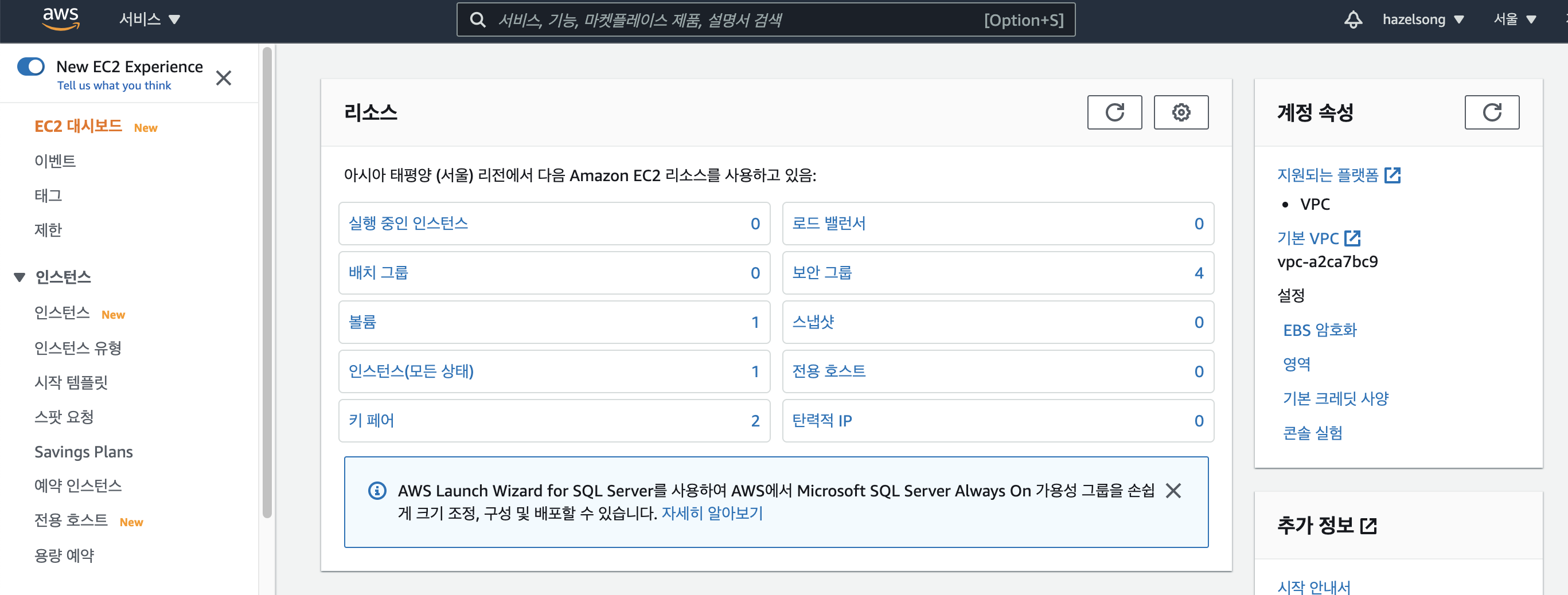 즉 내가 컴퓨터를 어디서 빌릴 것인가?를 정하는 것이다. 당연히 한국에서 서버를 가동시키려면 서울로 지역을 설정하는 것이 좋다.