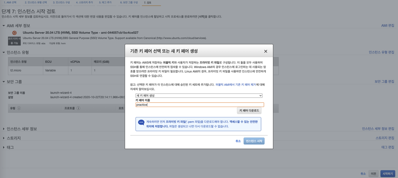 -> 이 때 설치되는 pem 키를 통해서 AWS 서버에 접속하는 것이므로, 관리를 잘 해야한다.