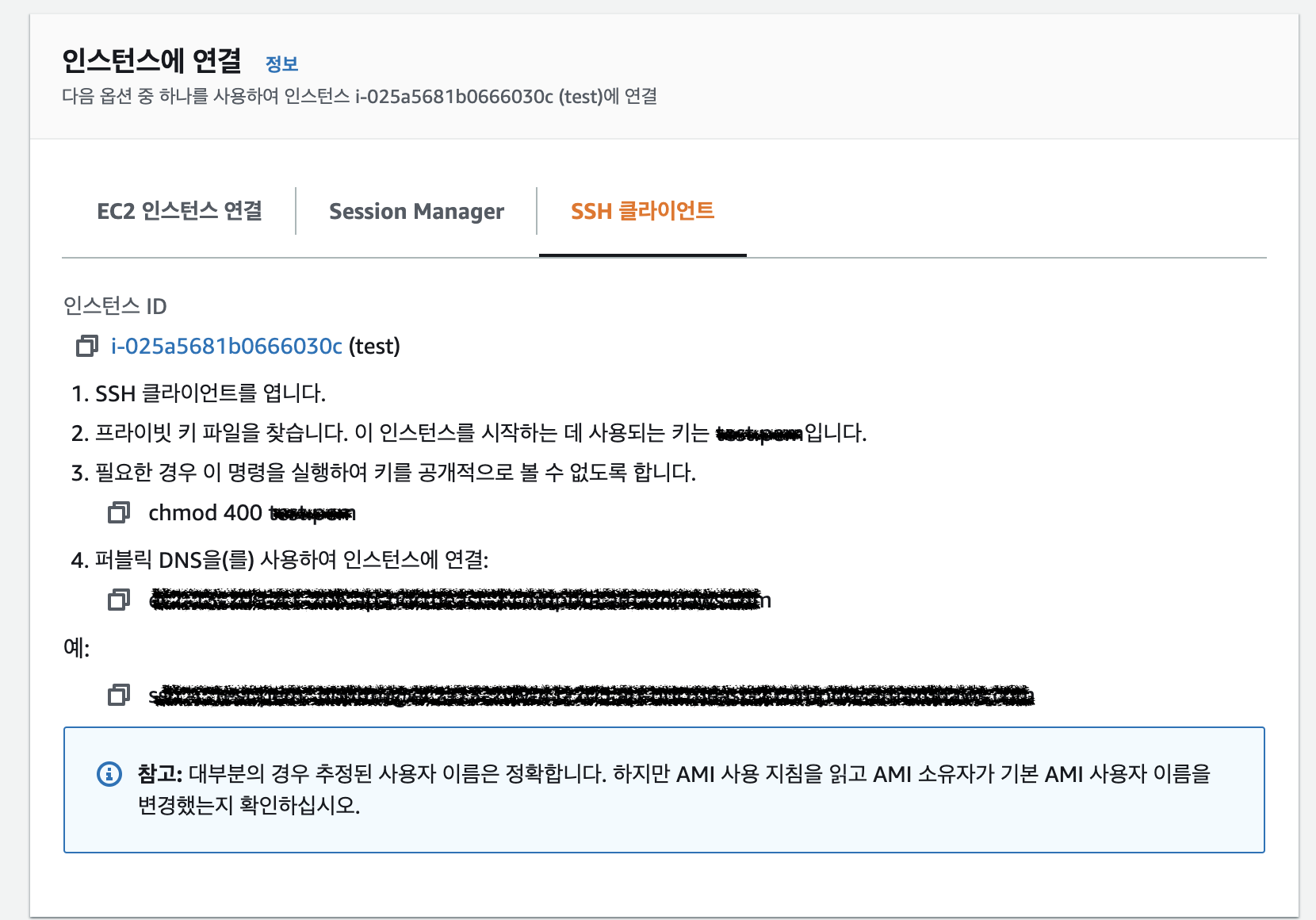 우선 인스턴스 연결 탭을 통해서는 웹 상에서 바로 연결하고자 하는 서버로 들어갈 수 있게 된다.