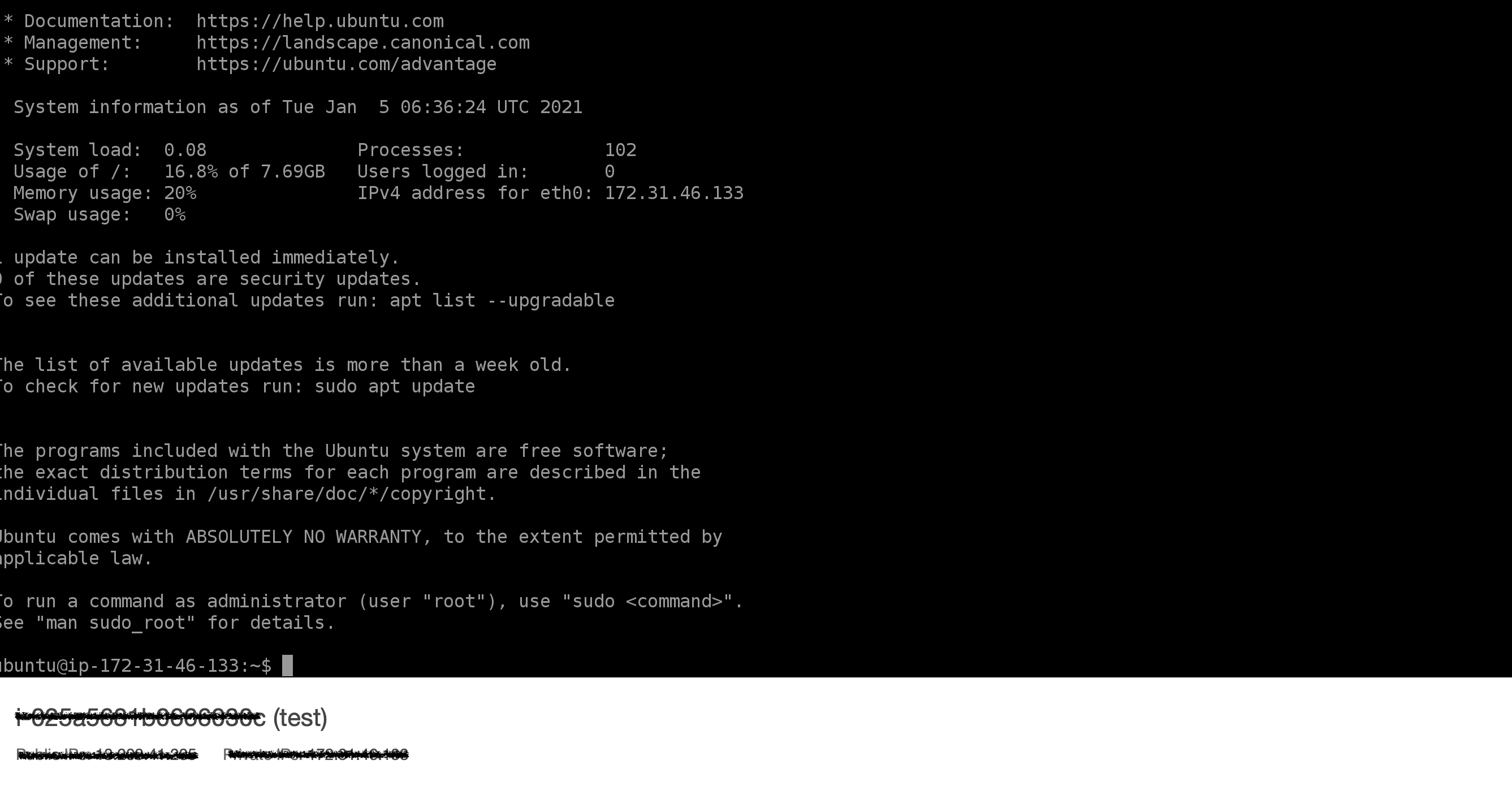 인스턴스에 접속한 후, 웹서버를 설치해서 누구나 접속할 수 있게 할 것이고 이를 위해 해당 컴퓨터 내의 시스템을 최신 것으로 업데이트 해주기 위해 해당 명령어를 실행한다.