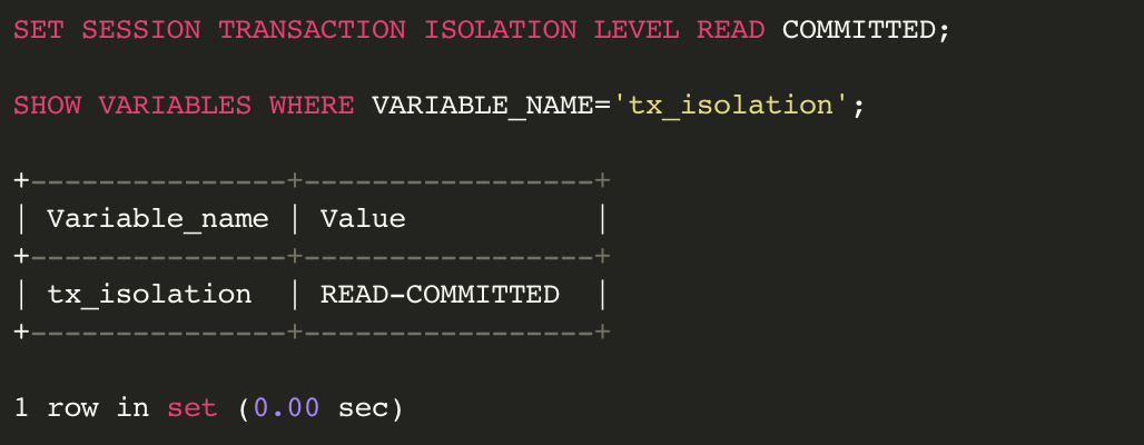 또한 아래의 명령어로 격리수준을 조정할 수도 있다.