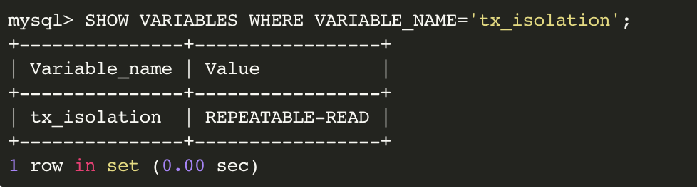 아래의 명령어로 현재의 격리수준을 확인할 수 있다.
