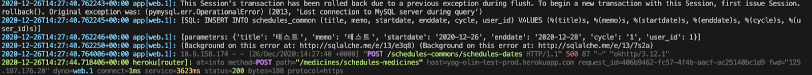 코드 자체는 문제가 없었고, 이 에러가 한 번 나면 서버와 db 자체를 잠깐 쉬어줘야 했다.