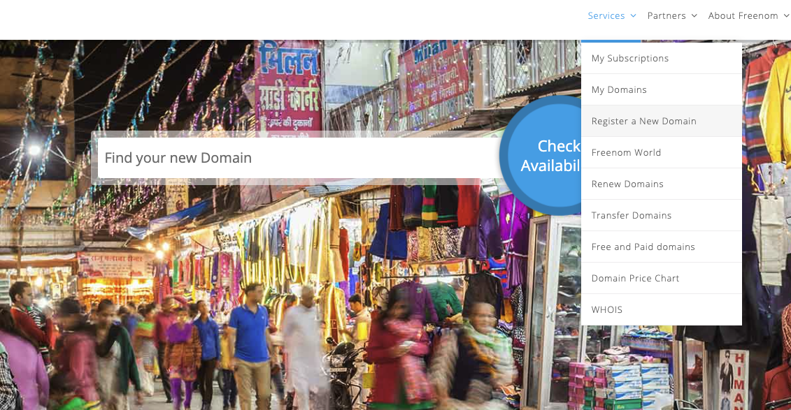 회원 가입 후에, register new domain 으로 원하는 도메인이 이미 사용하는 지를 확인하고 없으면 등록하여 사용할 수 있다.
