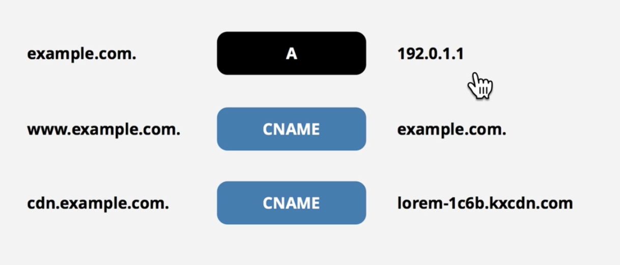 -> 도메인에 대한 별명으로써, A타입으로 지정되어 있다면 ip 주소를 출력해주고, CNAME타입으로 지정되어 있다면 www.가 없는 또다른 도메인을 지정하는 것이다.
