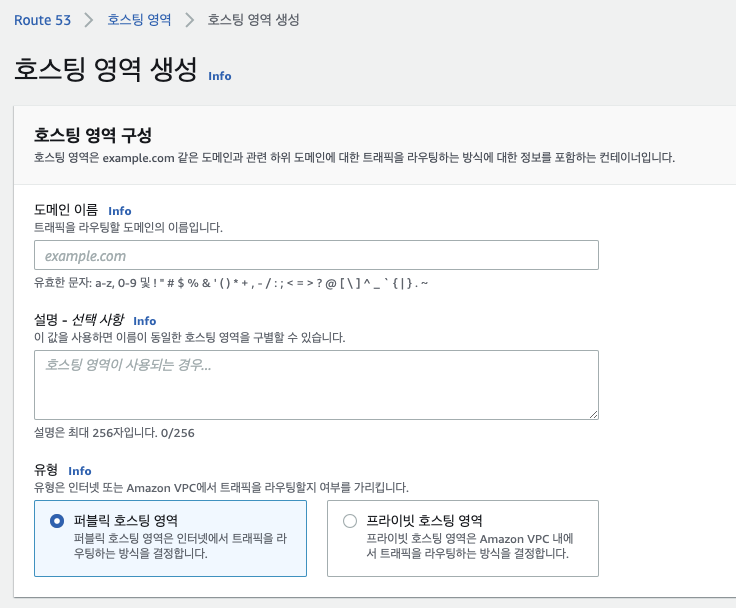 -> 이미 도메인을 다른 곳에서 발급한 상태라면 우리는 Route 53에서 호스팅영역생성부터 진행할 것이다.