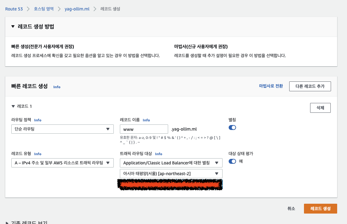 이렇게 인증까지 받은 도메인을 우리가 만든 서버 (ELB-EC2)와 연결해 주어야 한다.