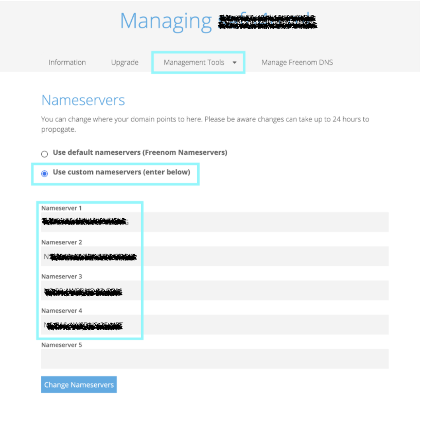 그래서 위의 NS의 값/트래픽 라우팅 대상에 있는 값들을 도메인 생성한 곳의 도메인에서 Nameservers에 등록시킨다
