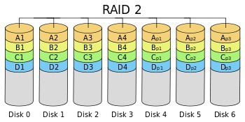 복구용 디스크를 추가로 두는데, 이 때 "해밍코드(Hamming code)"를 이용하여 복구용 디스크를 만듭니다. RAID 2는 RAID 0 + 복구용 디스크가 있는데, 그 복구용 디스크는 해밍코드를 이용해 구성한다.