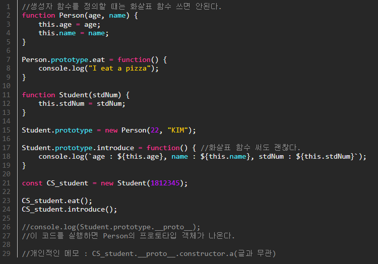 - 따라서 사용자는 prototype만 신경쓰면 된다. _proto_는 prototype이 제대로 구현되었는지 확인용으로 사용한다.