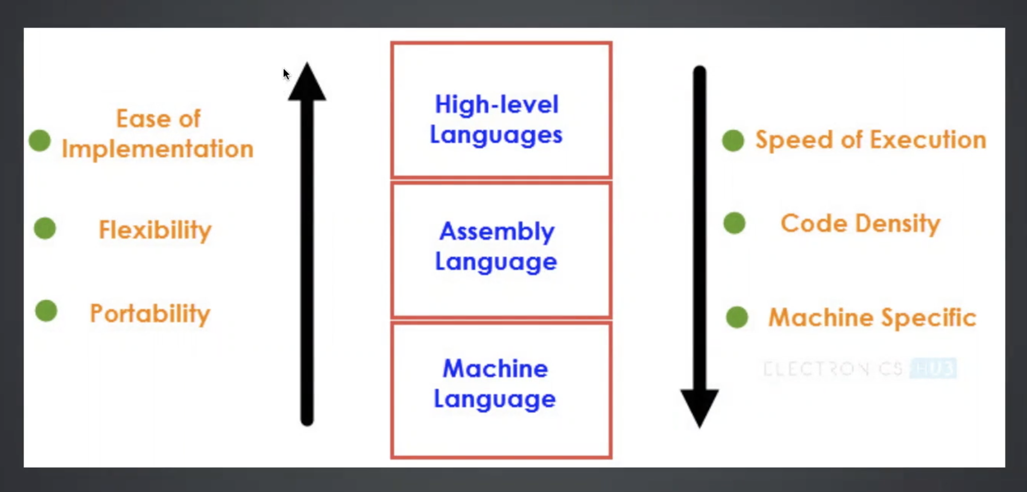 assembly language(어셈블리어) : 적은 명령어로 이루어진 언어. 그 명령어들은 사람들이 사용하는 언어로 구성되어있다. (or , and 등..)