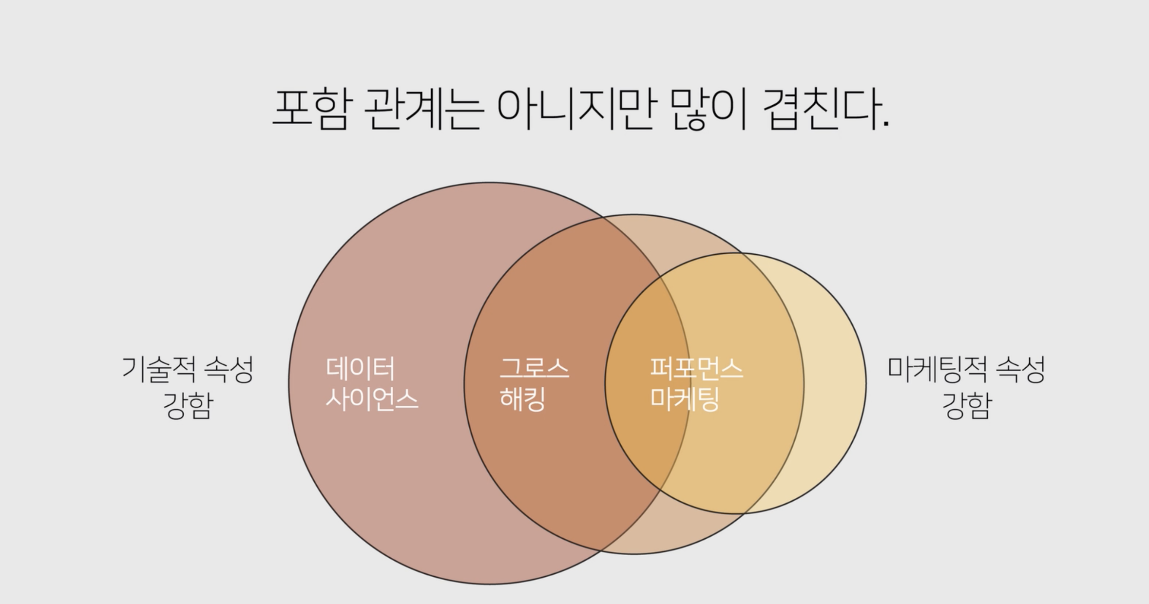 빅데이터 개념이 생겨나면서 관련된 업무는 크게 위와 같이 구분된다. 데이터 분석가는 그로스해킹과 데이터 사이언스의 중간 지점에서 분석과 마케팅 업무를 진행하는 것으로 업무를 정의할 수 있다.