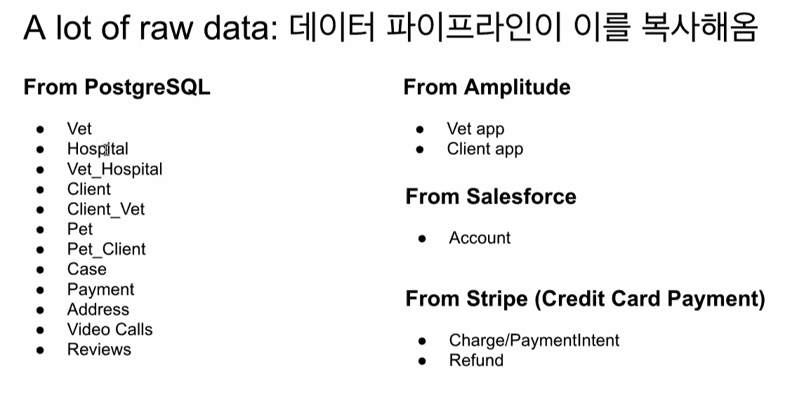 -> 데이터 파이프라인을 통해 왼쪽의 데이터들을 raw_data에 복사함.