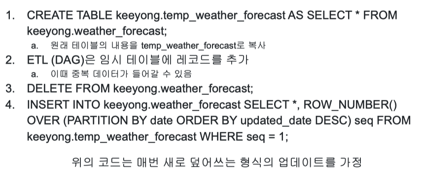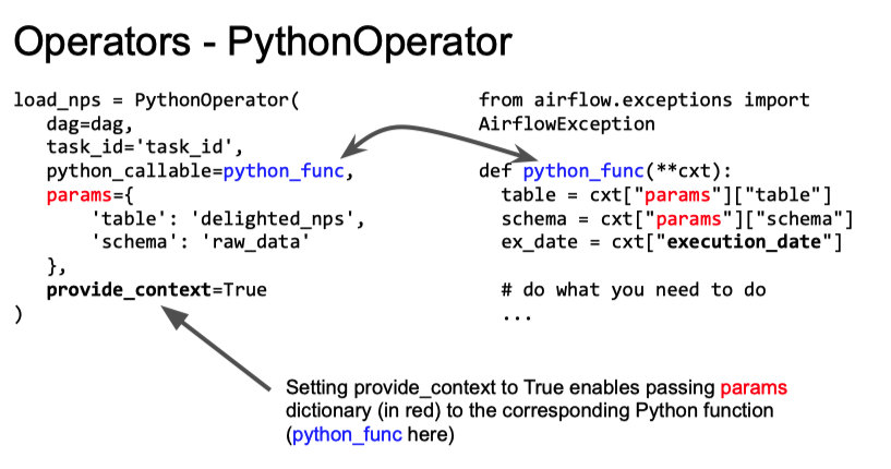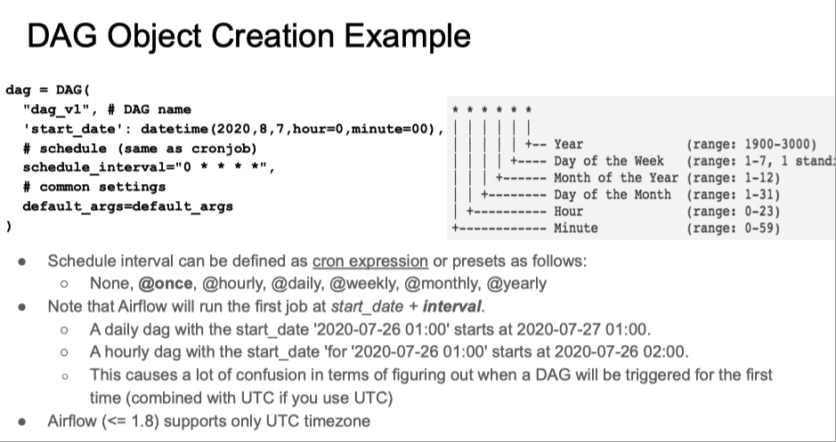 -> execution date는 후에 backfill할때 매우 중요, 데이터의 start date가 아닌 dag가 실행되는 그 날짜로 지정될 수 있도록 하는 것이 중요하다.