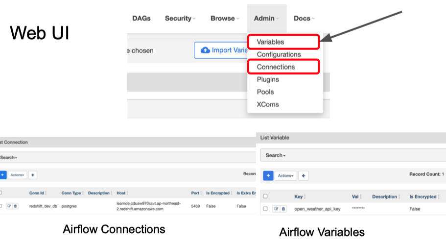 -> 연결시 계정과 여러 variables를 하드코딩 하지 않고, 하나의 인자로 활용 가능한 air flow의 기능