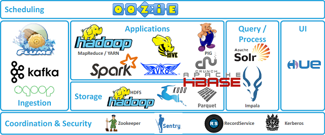 일반적으로 하둡 분산처리시스템(HDFS)과 맵리듀스(MapReduce) 프레임워크로 시작되었으나, 여러 데이터 저장, 실행 엔진, 프로그래밍 및 데이터 처리 같은 하둡 생태계 전반을 포함하는 의미로 확장, 발전되고 있다.