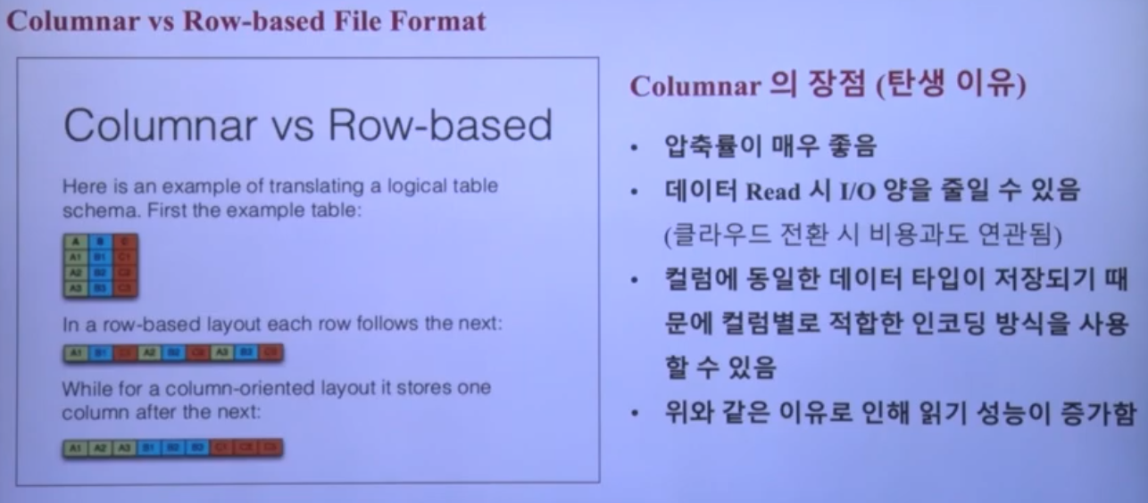 -> 대표적으로 ORC(하이브에서 많이 사용), Parquet
