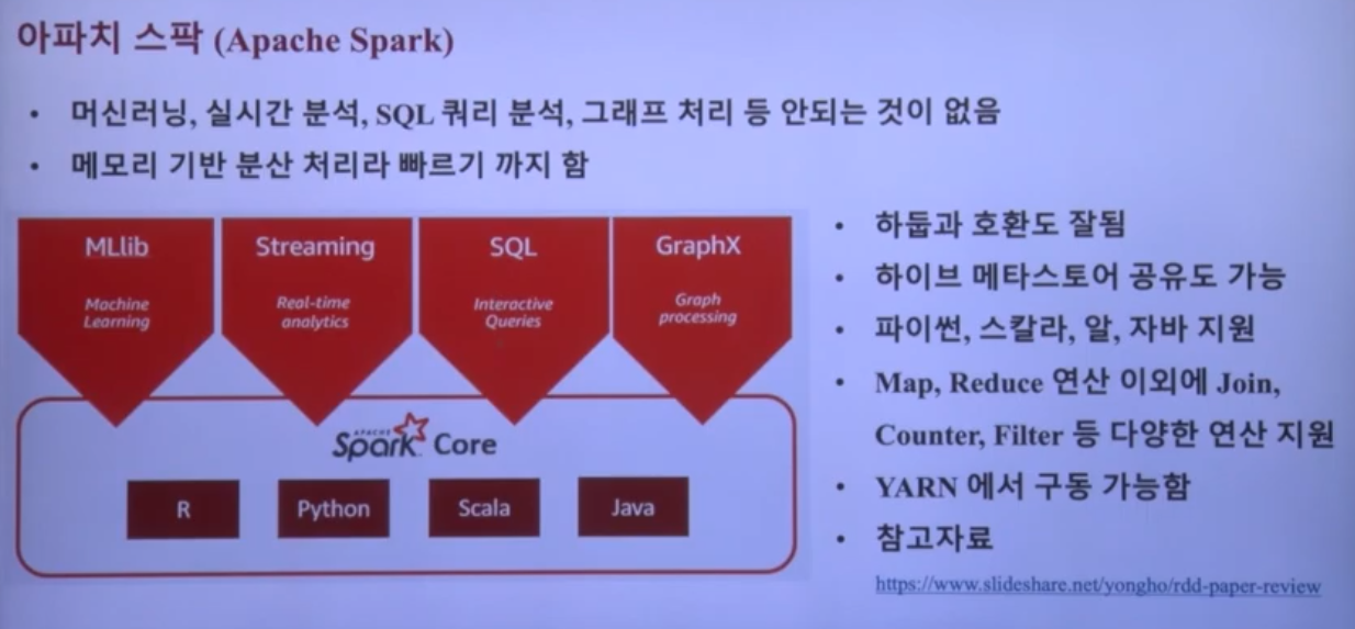 - 하둡 에코시스템중에서 spark 엔진 등장