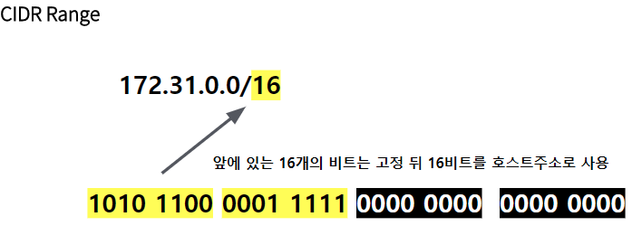 aws에서 ip주소를 표현할 때 CIDR(사이더)라는 국제적인 표준을 사용한다. 사이더는 ip주소의 영역을 여러 네트워크영역과 호스트영역으로 나눌 때 유연하게 사용할 수 있다.