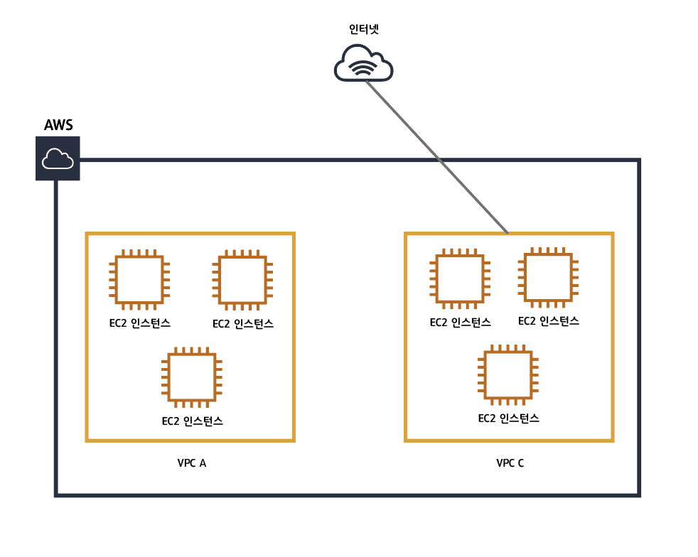 VPC를 따로 쓴다 = 다른 네트워크다 = 통신이 인지하기에 다른 장소에 있다.