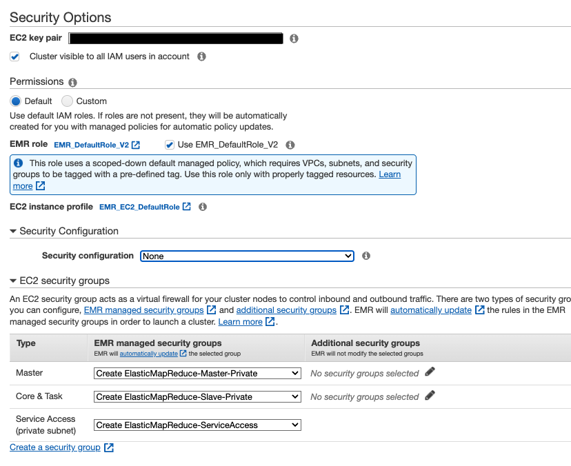 2020년 12월 이전에 ElasticMapReduce-Master 보안 그룹에는 모든 소스에서 포트 22의 인바운드 트래픽을 허용하는 사전 구성된 규칙이 있었습니다. 이 규칙은 마스터 노드에 대한 초기 SSH 연결을 간소화