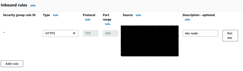 모든 노드그룹에 대해 https 타입으로 443 포트로 열어준다.