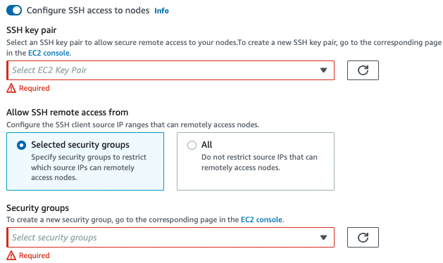 -> 여기서 additional security group이 바로 위에서 생성한 control plane에 대한 보안 그룹이다