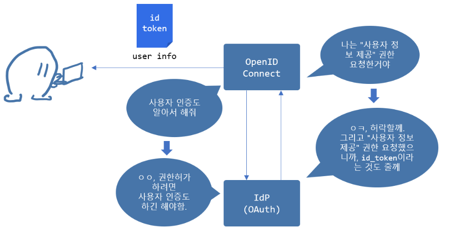 - 목적은 사용자 인증과 사용자 신원 정보 제공/ 즉 OIDC로 OAuth에 있는 사용자 신원 정보를 제공해 달라고 권한을 요청하는 것이다.