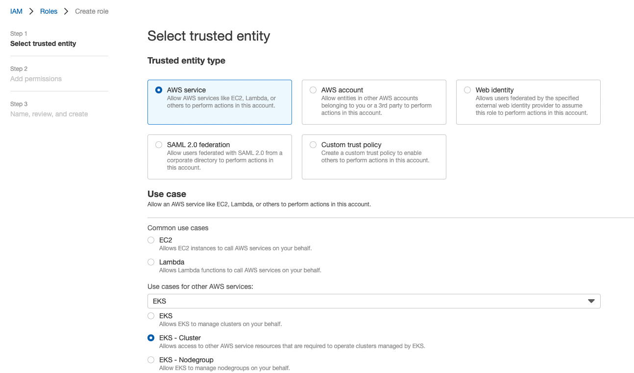 1. eks cluster 역할 생성