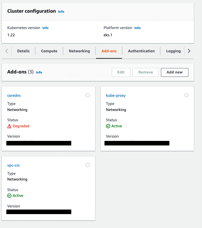 -> aws console에서 coredns status를 degraded -> active로 해야 노드그룹 생성 할 수 있을 것 같음.