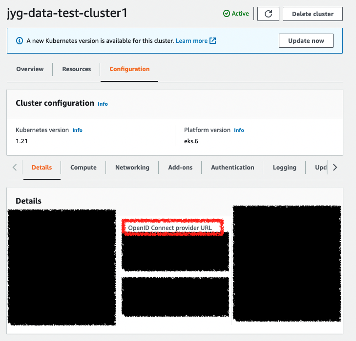 -> eks cluster의 detail에서 위의 URL을 복사