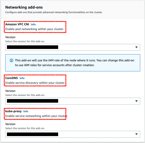 eks 생성 시에 네트워크 추가기능에서 기본으로 CNI 플러그인이 설치된다