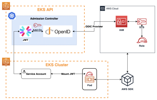 Kubernetes는 OpenID Connect (OIDC)를 지원하기 때문에, Service Account와 OIDC를 매핑하여 인증절차로 사용할 수 있는 것이다. 다만 이를 WebHook에서 이전에는 Pod Identity WebHook으로 따로 구성하여서 사용하였다.