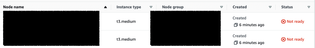 -> 노드(instance)는 금방 생성되지만, 노드 그룹은 생성되는데 시간이 조금 걸린다. creating 상태가 끝나고 난다음에도 ready 상태가 되지 않으면 아래의 ssh 명령어로 container 접속하기