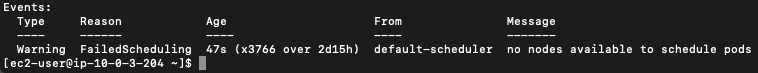 위의 에러는 스케줄링할 노드가 없을 때 발생하는 에러이다. 즉 pod를 스케줄링 할 노드가 없다는 의미인 것이다.