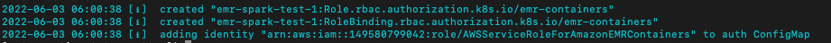 eks에서 emr이 클러스터의 특정 네임스페이스에 액세스할 수 있도록 허용해야 한다. 쿠버네티스 역할 생성, 쿠버네티스 사용자에게 역할을 바인딩하고 사용자를 서비스 연결 역할로 매핑한다.
