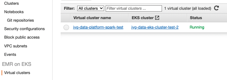 https://docs.aws.amazon.com/ko_kr/emr/latest/EMR-on-EKS-DevelopmentGuide/virtual-cluster.html