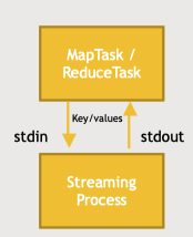 Java에 매핑, 리듀싱 함수를 작성하는 대신 Python이나 컴퓨터 클러스터 노드에서 작동하는 프로세스에 대신 작성하고 표준 입출력을 사용해 소통한다. 표준 입력을 통해 데이터를 받아 매퍼를 실행하고 표준 출력으로 키-값 쌍을 받아낼 수 있다