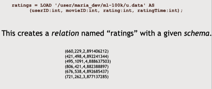 한 줄의 코드로 그 데이터를 Pig의 '관계성'(relation) 속으로 불러올 수 있다
