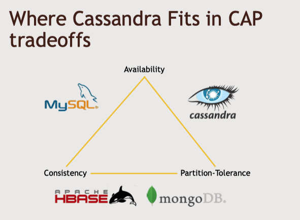 - 일관성 : 데이터베이스에 무언가를 작성했을 때 무슨일이 있어도 나중에 응답을 받는다. 해당 개념은 카산드라가 제공하는 궁극적 일관성이라는 개념과 맞바꿀 수 있다. 어떤 값을 작성 했을 때 값이 1~2초 정도 돌아오지 않아도 괜찮다는 개념