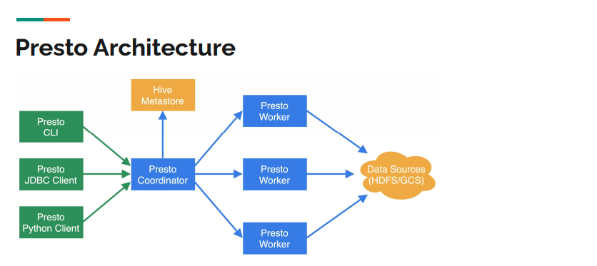 - 어떠한 데이터 스토어가 수평적으로 확장된다면 presto를 통해 단일 접근 지점을 만들어서 데이터가 어디에 있든 상관없이 쿼리를 실행할 수 있다.