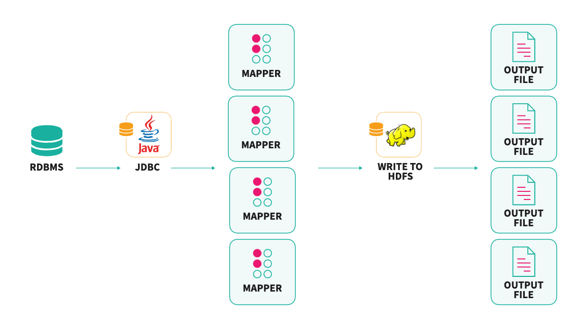 sqoop내의 mapper로 데이터 세트들이 서로 다른 파티션으로 분할되고 전송되는 각각의 레코드는 데이터베이스 메타 데이터를 사용하여 데이터 유형을 추론하기 때문이 안전한 방식으로 처리된다.