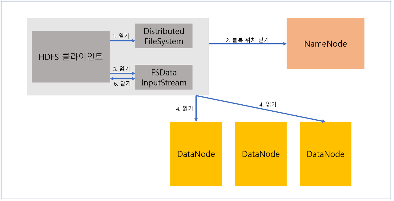 - 블록의 끝에 도달하면 데이터 노드의 연결을 닫고 다음 블록의 데이터노드를 찾는다.