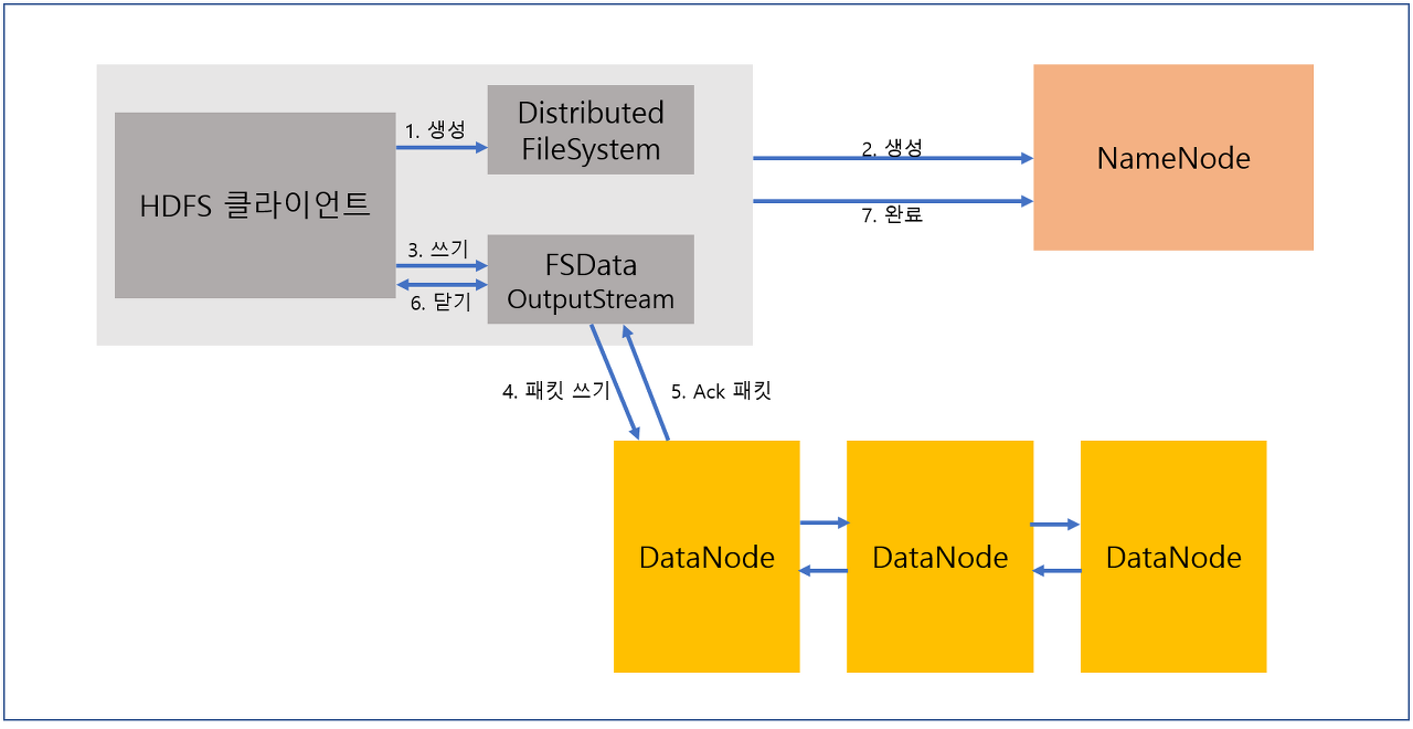 - 파이프라인을 통해 첫번째 데이터노드부터 차례로 패킷을 전송한다.