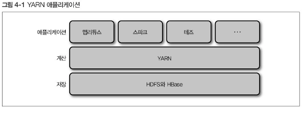 YARN은 하둡의 클러스터 자원관리 시스템이다. 맵리듀스의 성능을 높이기 위해 하둡2에서 처음 도입되었으나 맵리듀스뿐만 아니라 다른 분산 컴퓨팅 도구도 지원한다.
